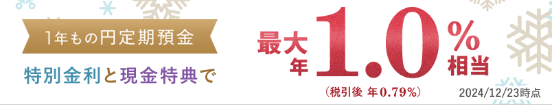 冬のボーナスキャンペーン:「冬の1年もの特別金利+円預金増やして優遇キャンペーン」