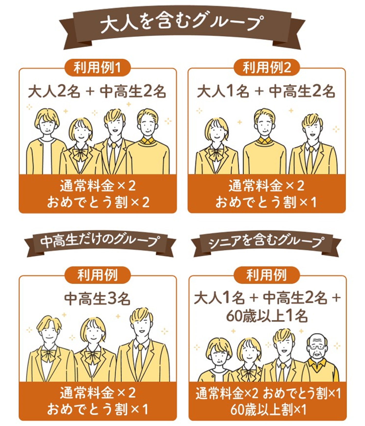 ●利用条件:食べ放題コースを通常料金でご利用いただいた方1名様に対して、同グループ内の中高生1名様の食べ放題コースの料金(税込)を割引、割引対象は年齢確認のできる中学生・15歳~18歳のお客様が対象です※詳しい利用条件はクーポンをご確認ください
