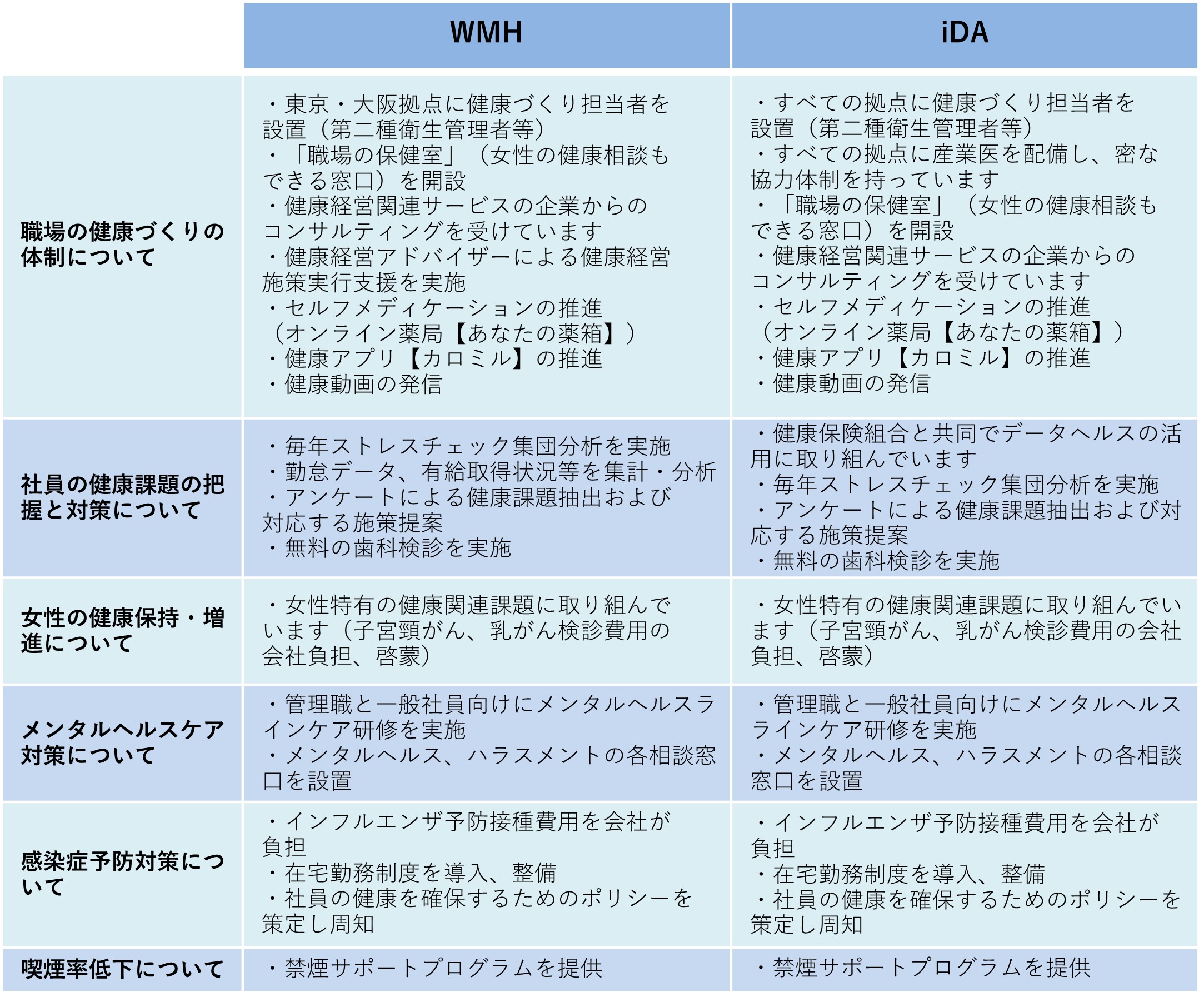 WMHとiDAの健康経営に向けた取り組み