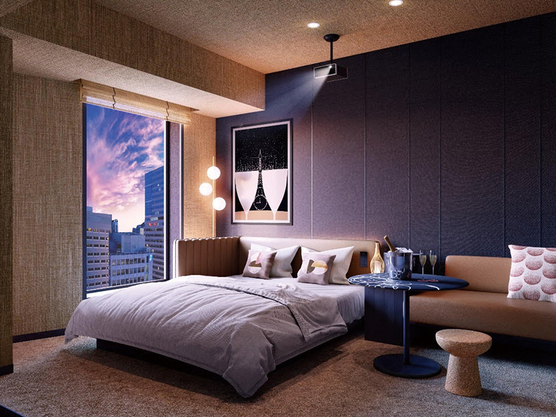 客室は約23~60平米の全161室。「プロセッコ」「オミキ」「キャンバス」タイプと、それぞれ「酔いしれる」をコンセプトに “お酒” のエッセンスが散りばめられた客室デザインとなっています。