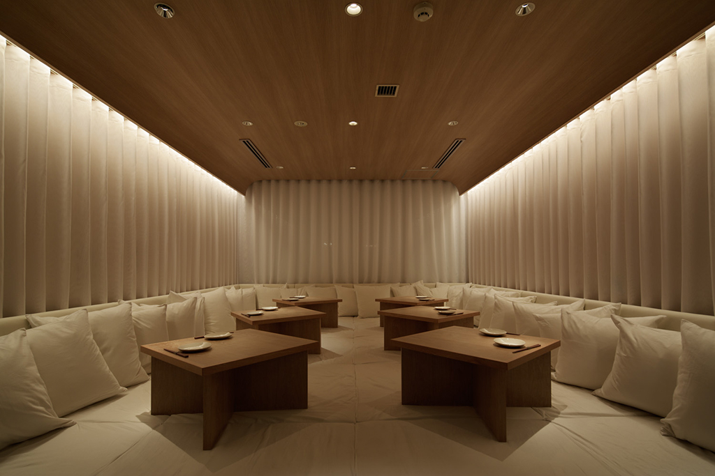 まさしくお家のリビングのように靴を脱いで寛げる特徴的な「小上がり席」をはじめ、スタイリッシュで広々とした空間の「メインダイニング」、大切な人と、時間を忘れて語り合える落ち着き溢れる「ボックス席」や「カウンター席」など、恵比寿という街で❝隠れ家❞と呼ばれるに相応しい多彩なお席をご用意しています。