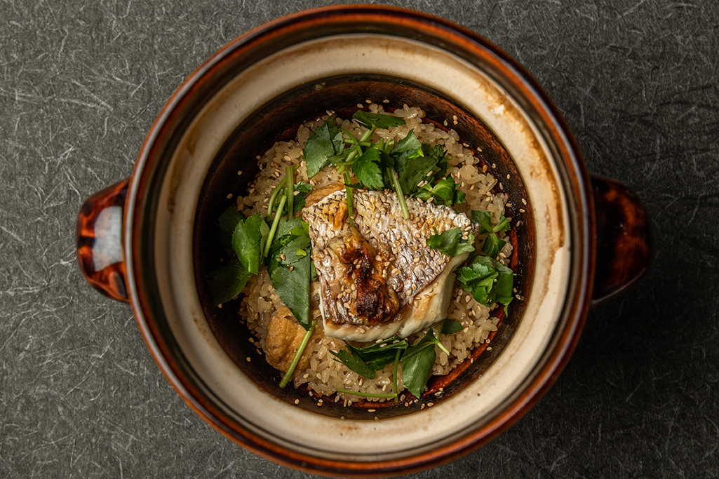 ①瀬戸内産 真鯛と三つ葉の羽釜ご飯 大2,000円/小1,580円