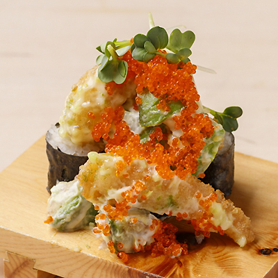 海老&アボカドは特に女性に人気の組み合わせ。とびこのあしらいでより華やかに。