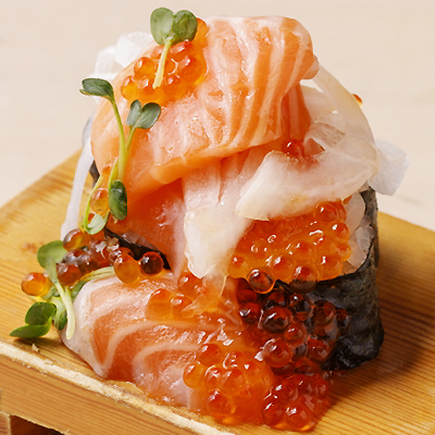 こちらも女性人気高し!旨みが濃厚なトロとサーモンに、たっぷりのいくらでごちそう感満載。