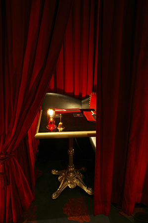 吸血鬼の居城として伯爵の支配下に置かれた館内は、ミステリアスな魅力に溢れ、ここが銀座のビルの一角だと忘れてしまうほど。