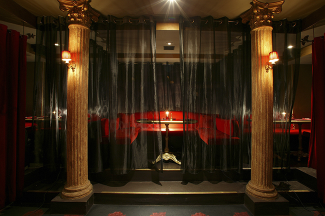 一段高いところから館が見渡せるVIP席。薄いカーテンで仕切られた個室感は、3~6人のワイワイ女子会に特にオススメ。