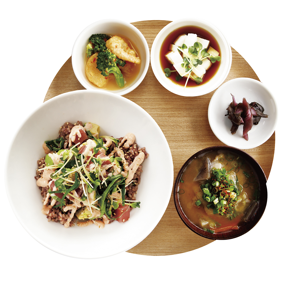 ほかほかの黒米の上に、とろけるように柔らかいアボカドとマグロ、さらに明太子マヨネーズ…この組み合わせにリピーター続出の人気メニューです。