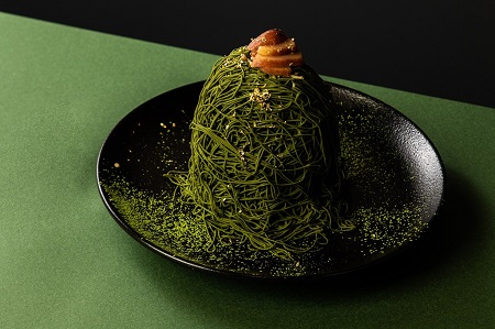 ご注文いただくごとにモンブランクリームを絞り、一つ一つ手仕事で仕上げる「京都宇治 藤井茗縁」の看板デザート。口の中でほろりとほどける、絹糸のような繊細な食感と、抹茶の苦みと栗の甘みの絶妙なバランスが魅力です。キャンペーン期間中は、季節限定の「ほうじ茶の搾りたてモンブラン(1,650円/宇治茶つき2,090円)」もお楽しみいただけます。
