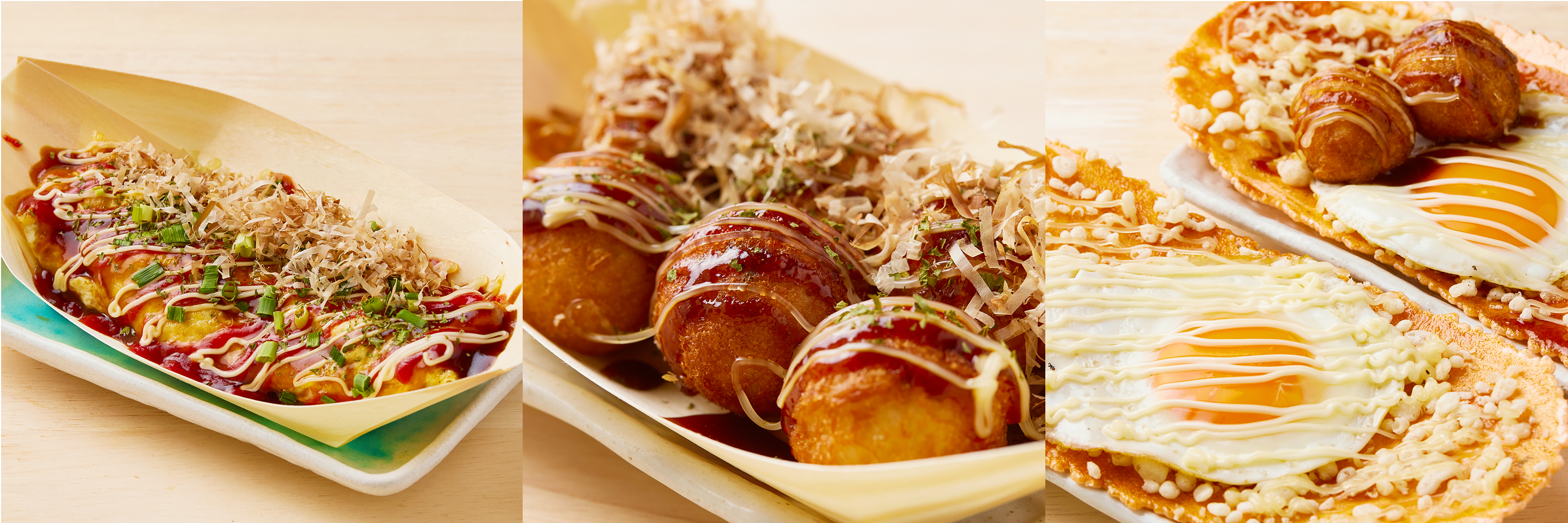 今さら語る間もない関西名物。ひらひらなびくかつお節がまた食欲をそそります。