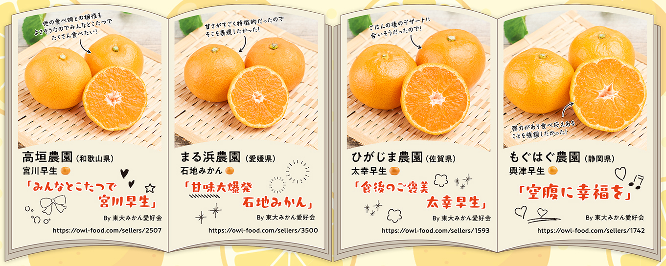 ■東大みかん愛好会メンバーが12種のみかんのキャッチコピーを考案!ワードセンス光るキャッチコピーに注目!