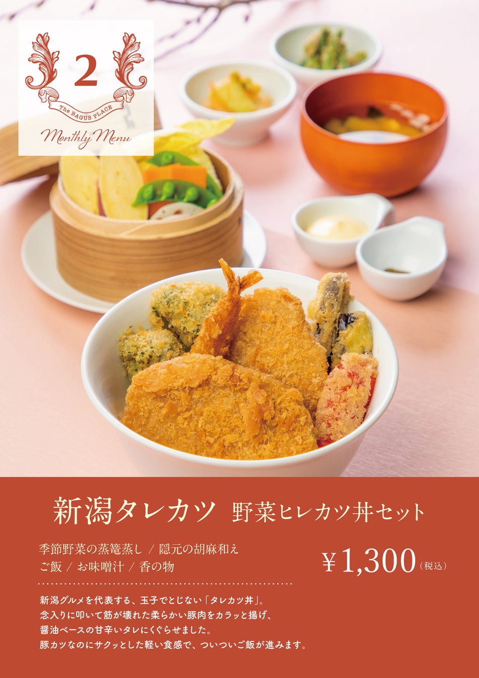 2月ランチメニューは新潟が誇るソウルフード「新潟タレカツ 野菜ヒレカツ丼セット 」が登場