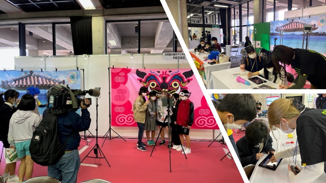 REDEEはそのイベントの中で、YouTuber体験、ゲーミング英会話の2種類のコンテンツを提供。2日間で市内の子どもたちを中心とする約150名が参加し、最新のデジタル機器によるデジタル体験をしました。