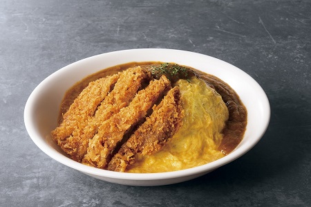 カツカレー×オムライスのハイブリッドメニュー。手のひらほどの大きなカツが鎮座する見た目インパクトも充分。豚肉には疲労回復に効果があると言われるビタミンB群が含まれているので、頑張り時のエナジーチャージにピッタリです。