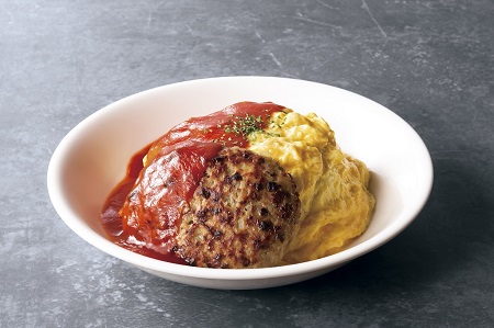 オムライスにはやっぱり昔懐かしいトマトソース派という方にオススメのトッピングがハンバーグ。肉汁溢れるジューシーなハンバーグと爽やかなトマトソースの組み合わせは、大人からお子様まで幅広い年代に人気です。