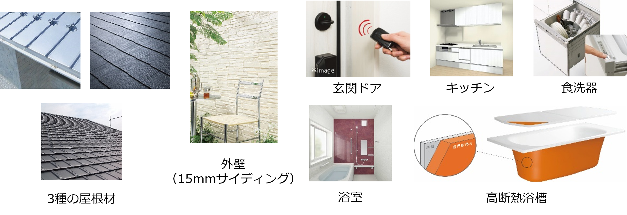 快適な暮らしを叶える装備をラインナップ。希望のデザインや機能性に合わせて選べる屋根材や、雨のチカラで汚れを洗い流してくれる外壁材など、長年にわたって快適な住まいが実現できるようになっています。