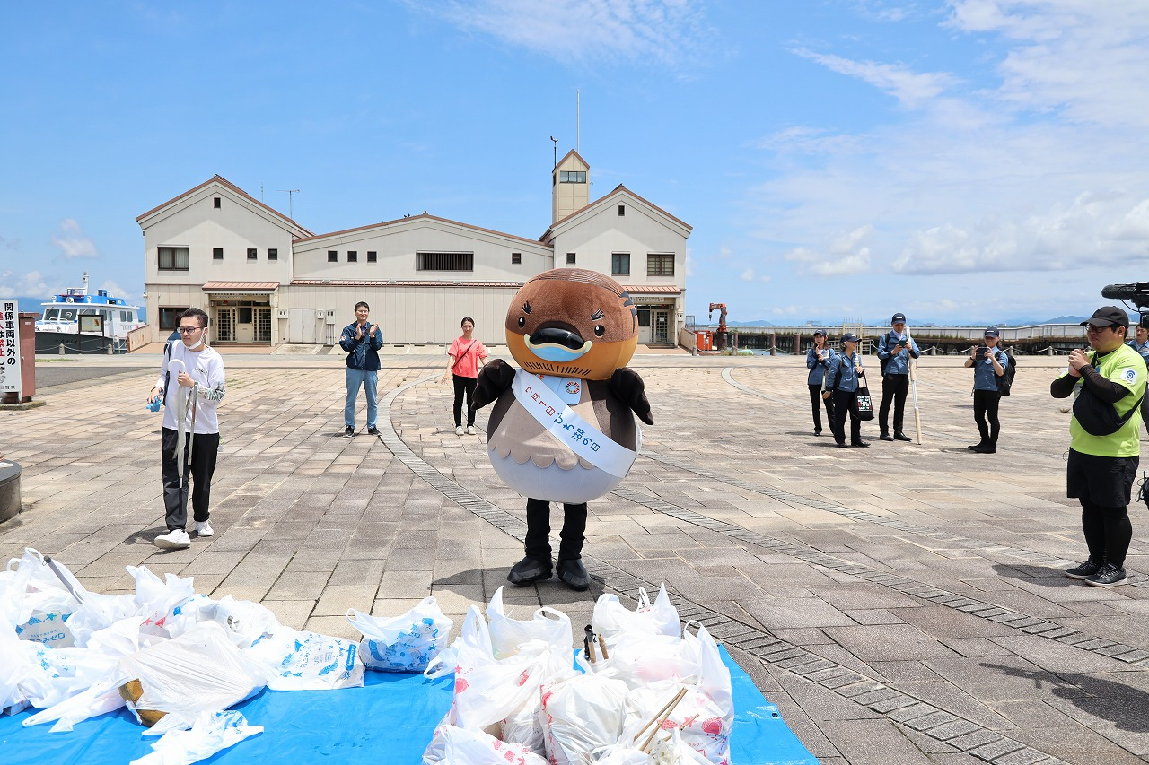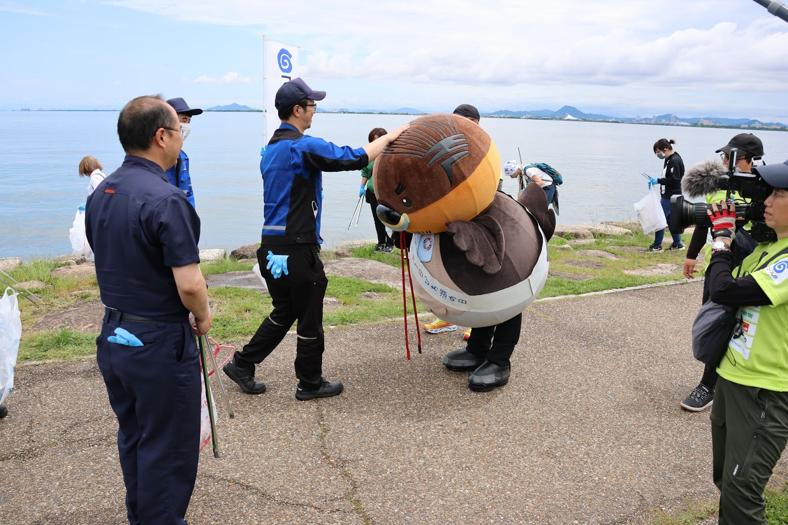 一般社団法人海と日本プロジェクトin滋賀県は、大津湖岸なぎさ公園打出の森にて滋賀県の人気キャラクター「野洲のおっさんカイツブリ」との大清掃会を、「ごみゼロの日」である5月30日(火)午前10時に開催しました。