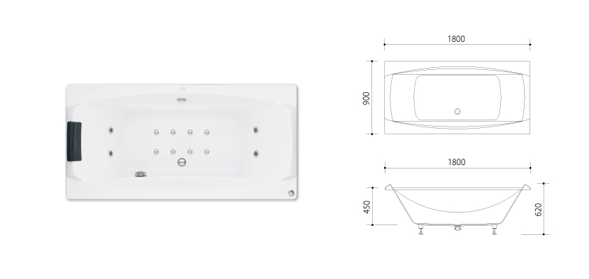 L1800×D900×H620(深さ450)㎜ 容量: 375ℓ