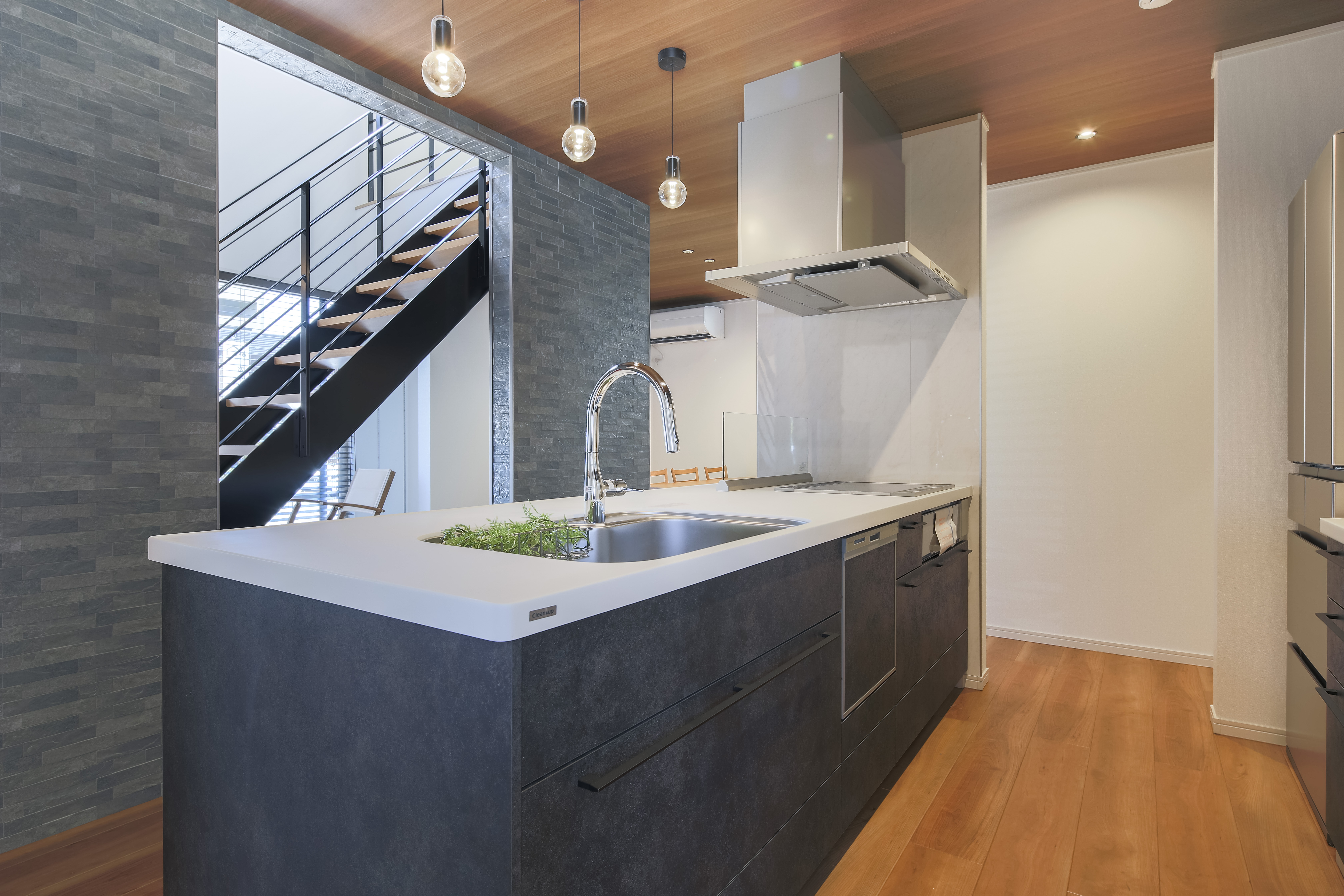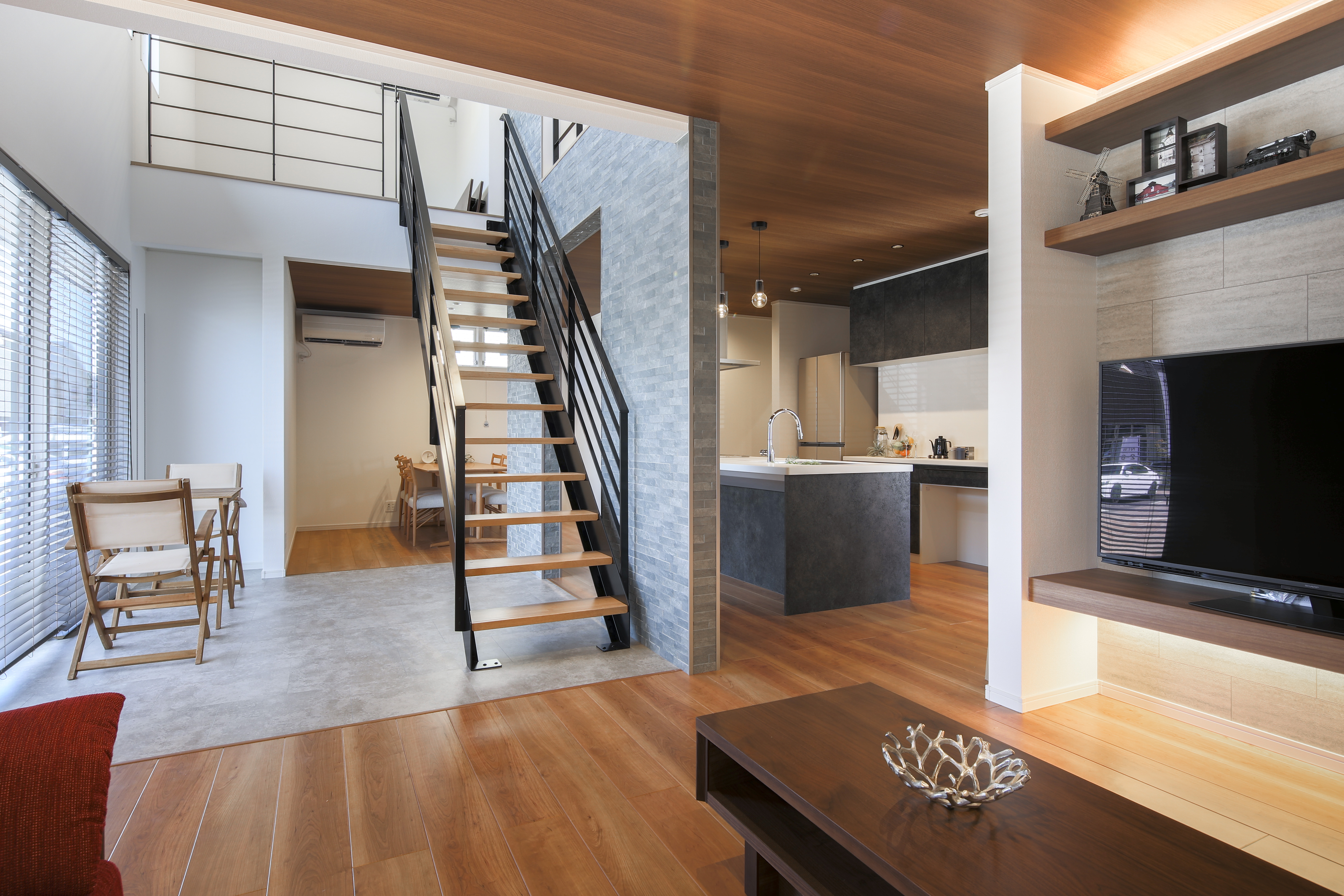 家の中の風通しを良くするとともに、空間を明るく見せてくれる吹抜けや、2階へとつながるオープン階段により、風通しの良い開放的な間取りとなっています。