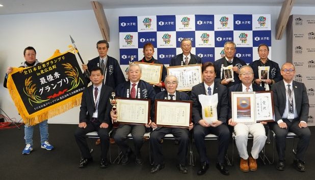昨年、開催された「第1回全日本お米グランプリin北広島町」には全国から363点の応募があり、1次・2次の予選で30点に絞られ、12月3日(土)に本選の審査が行われました。13人のお米や食に関する専門家が審査員として、炊きたてのごはんの味や香り、食感や外観(透明感)などを審査した結果、大子産米販売促進協議会 藤田久人氏(85才)が作った「大子産米コシヒカリ」が最優秀グランプリに輝きました。表彰式で藤田氏は「夢のような表彰をいただき感謝に耐えません。これからも若い人たちにも安心安全なお米を届けていけるよう、日々、励んでまいります」と喜びを表現しました。
