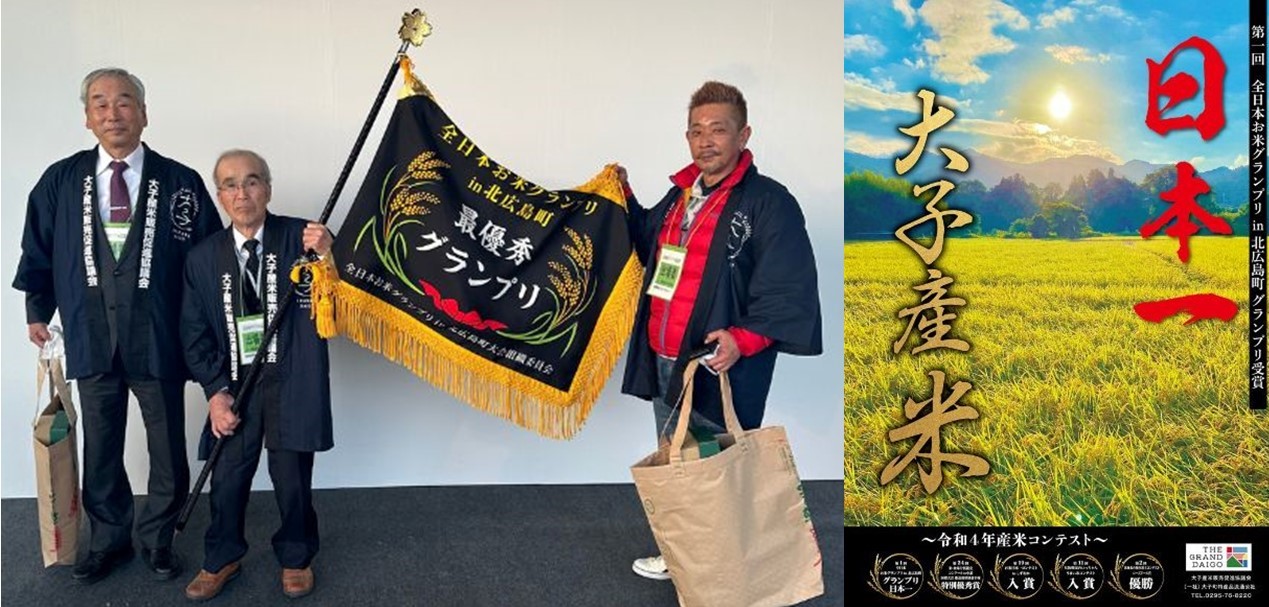 日本一の米を選ぶ大会でグランプリを獲得した藤田久人さんが所属する大子町の「大子産米販売促進協議会」は米の生産者で作る団体で、20代から80代の農家およそ40人がメンバーとなっています。大子町で作られるお米は豊かな清流と囲まれた山々による昼夜の寒暖差が大きい気候により、粒が大きくうまみや甘みが凝縮されているのが特徴です。当公社は、地域の農産物や特産品の価値を最大限に引き出し、地域経済の活性化を目指しています。消費者には良質で新鮮、安心・安全な農産物を提供し、生産者には販売や販路拡大、流通のサポートを引き続き行っていきたいと考えています。