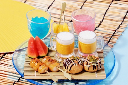 ・ビール風マンゴープリン ・たこ焼きシュークリーム ・みたらし団子 ・冷やしパイン ・かき氷グラニテ