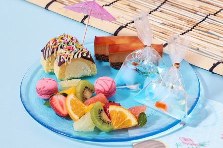 ・金魚すくいミントゼリー ・チョコバナナロールケーキ ・キャラメルケーキ ・フルーツ盛り合わせ