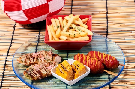 ・ポテトフライ醤油バター ・アメリカンドッグ ・お好み焼きバケット ・焼きとうもろこし