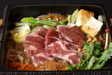 「ラム焼肉」をお楽しみいただいたあとはいよいよメインの「すき焼き」に。焼肉の美味しい脂が残る鍋に、野菜とラム肉を投入、割下を入れてぐつぐつと煮込めば完成です。ラム肉の様々な部位から溶け出した旨みと野菜の甘み、割下の濃厚な甘辛味が混然一体とすき焼きは、牛肉や豚肉のものとはまた違い、新たな美味の発見となること間違いなしです。