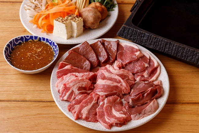 老化予防や脂肪燃焼効果が期待できる栄養成分を多く含み、ヘルシー食材として近年注目を集める羊肉、中でもクセの少ない仔羊肉の「ラム」を6部位盛り合わせ、「焼肉」と「すき焼き」、両方の❝いいとこ取り❞スタイルでお楽しみいただきます。