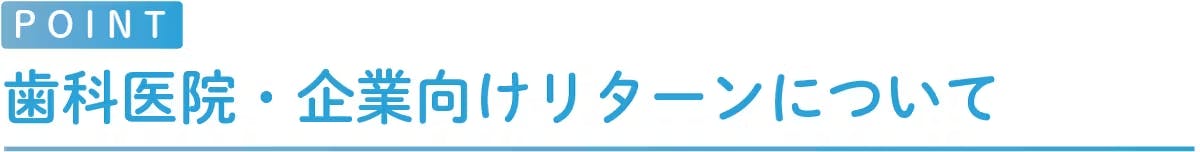 歯科医院や企業向けに、スポンサーや代理店・フランチャイズ加盟に関するリターンもご用意しております。私たちの想いに共感していただける方々からのご支援もしていただけます。