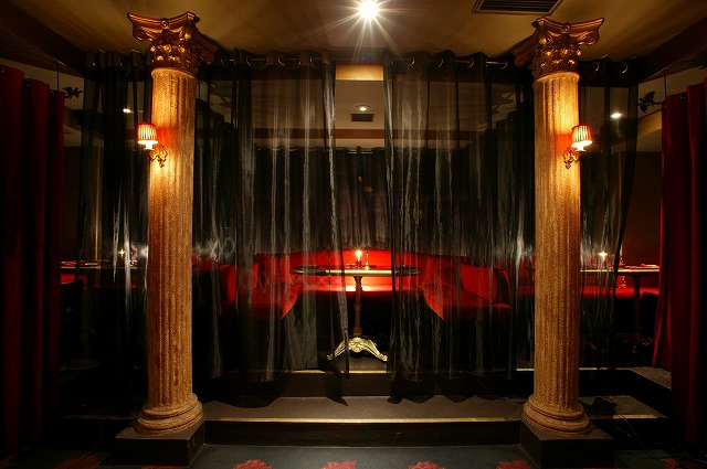 一段高いところから館が見渡せるVIP席。薄いカーテンで仕切られた個室感は、3~6人のワイワイ女子会に特にオススメ。
