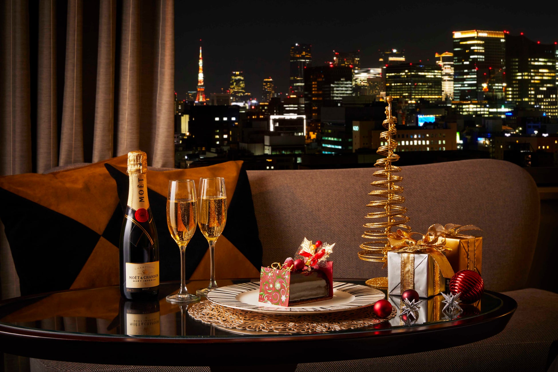 モエ・エ・シャンドンのハーフボトル、チョコレートと甘酸っぱいラズベリーで織り成すクリスマスケーキが付いたステイプラン。スタンダードフロアから、最上階の専用ラウンジのサービスで快適なステイが叶うエグゼクティブフロア、東京タワービュー確約のお部屋まで、多様な客室タイプからお好みのお部屋を選べる点も魅力のプランです。