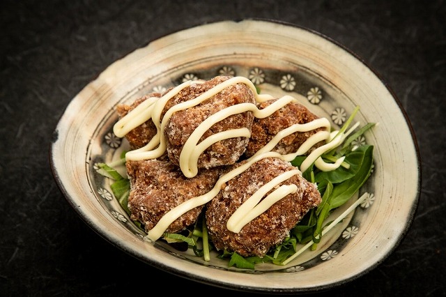動物性のお肉に比べて、高タンパク&低脂質な大豆ミートに、しっかりと下味を付けて揚げた、罪悪感は少なめで、満足度は高めな唐揚げ。豆乳マヨネーズでさらにさっぱりとヘルシーに。