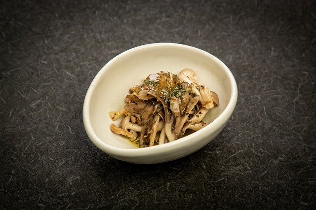 舞茸やエリンギ、しめじなど、数種のキノコをオリーブオイルとリンゴ酢でマリネに。甘酸っぱさの中にきのこの旨みを存分に感じられる冷菜は、白ワインとのマリアージュがオススメです。