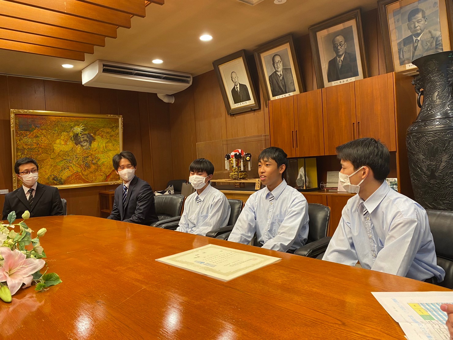 『スポGOMI甲子園2023愛媛県大会』で優勝に輝いた 新居浜工業高校「新工1」チームが新居浜市・石川勝行市長を表敬訪問しました。