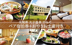 ◆大子温泉 やみぞ 1泊2日 ペア宿泊券+おやき 4個 お土産付き(茨城県大子町)