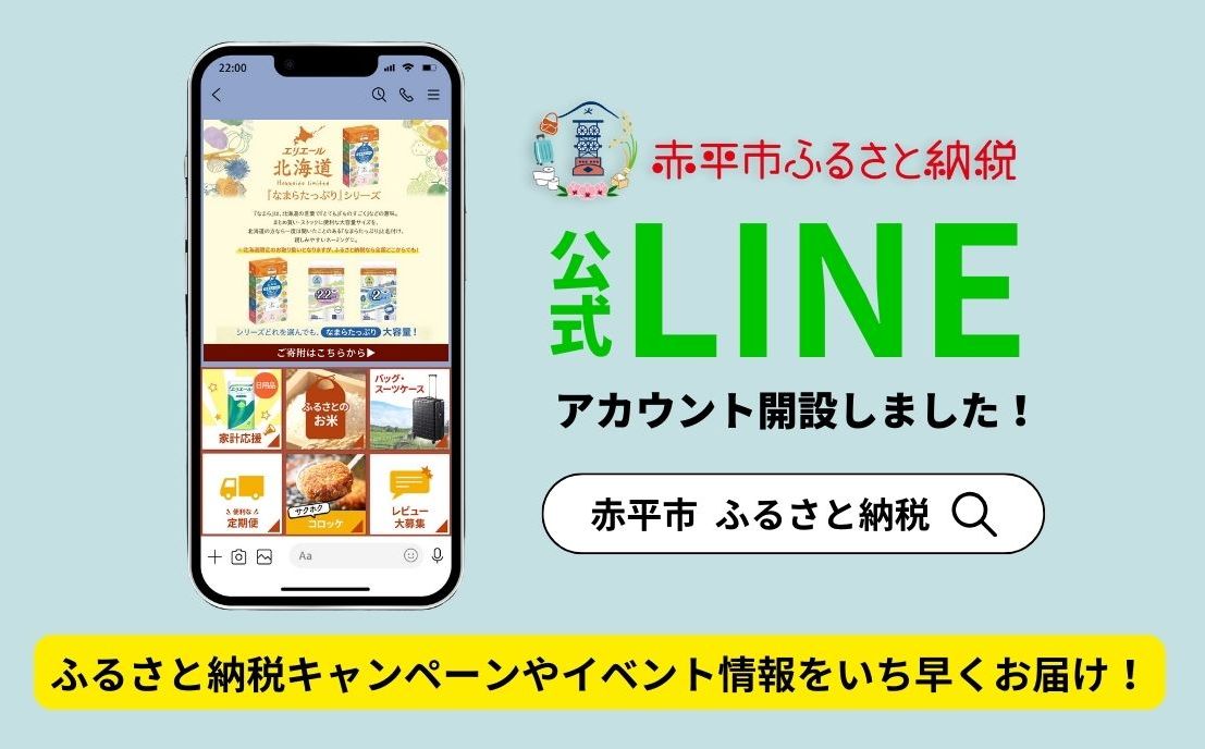 この度、寄附者さまと赤平市を繋ぐコミュニケーションツールとして、ふるさと納税LINE公式アカウントの開設に至りました。本アカウントでは赤平市の特産品や地域の魅力をご紹介するとともに、嬉しいキャンペーン情報などもご案内してまいります。配信を通してふるさと納税をより便利で身近なものに感じていただけますと幸いです。ぜひお友だち追加をして、赤平市の魅力を存分にお楽しみください。