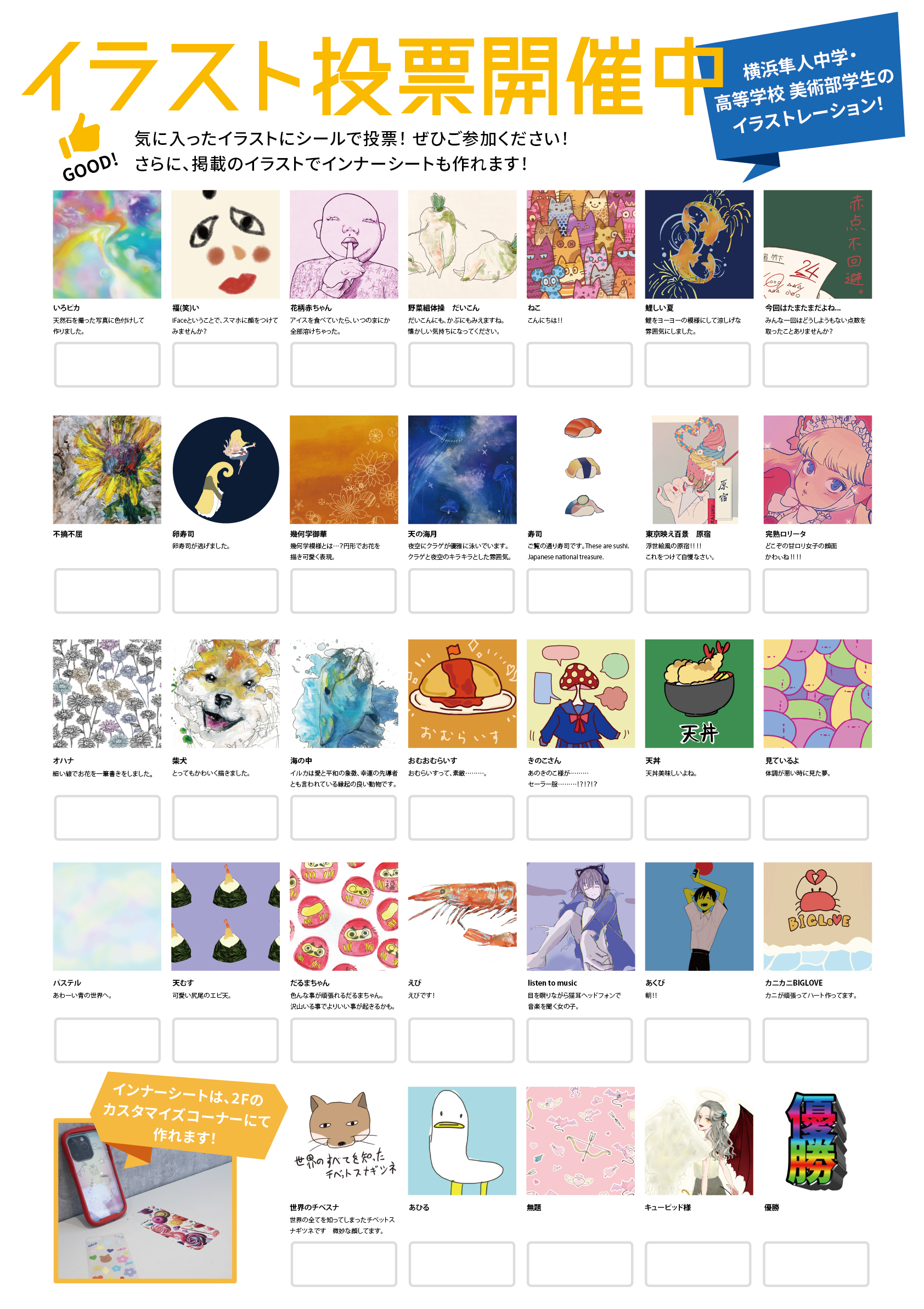 第一弾として、横浜隼人中学・高校美術部23名の学生がデザインした33作品のインナーシートの販売と人気投票を「iFace」のコンセプトストア「iFace Lab」にて開催します。