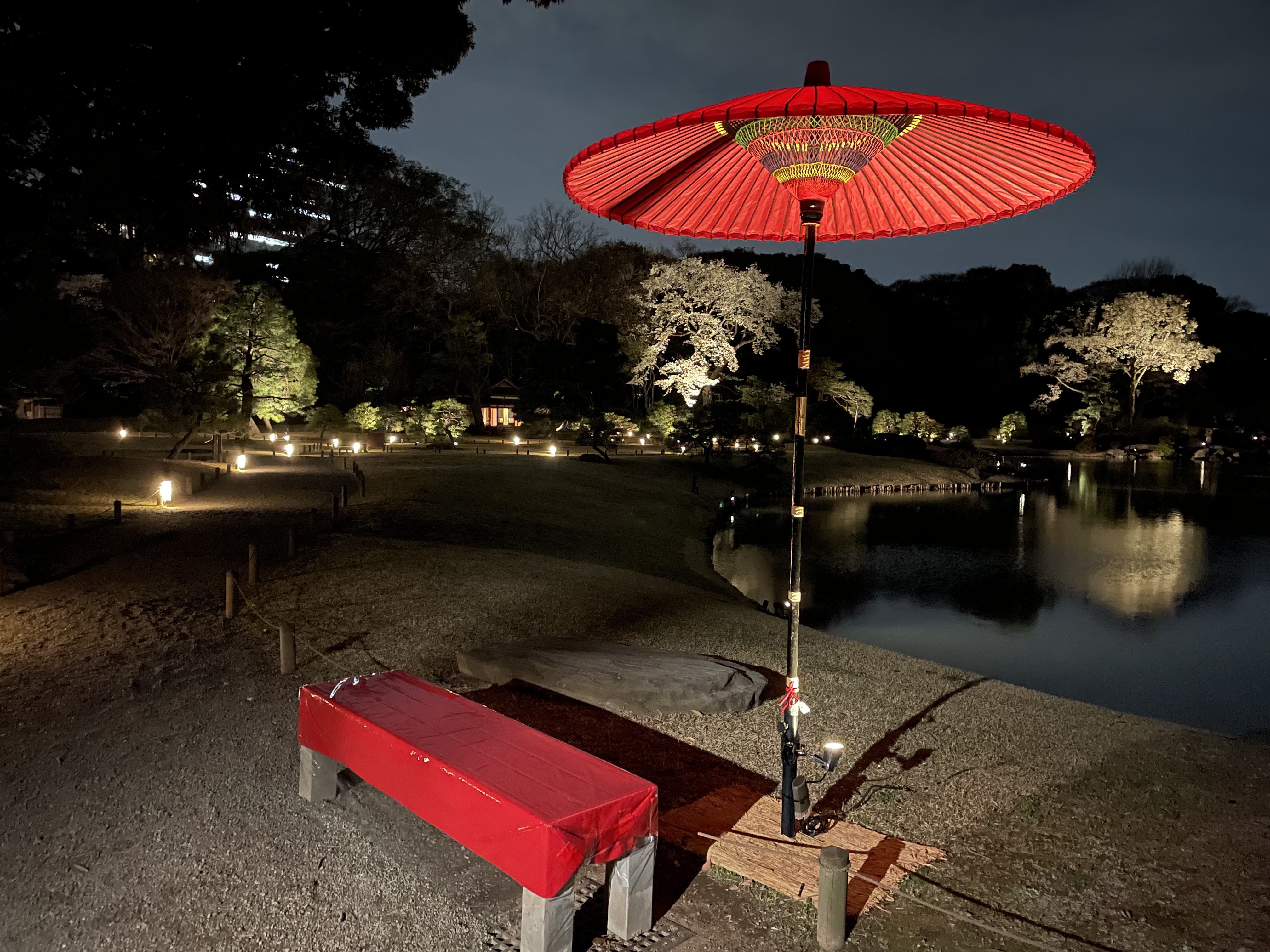 向暑の旧芝離宮庭園に満開の“光の桜”が咲き誇る、旧芝離宮夜会 by ワントゥーテン 〜ひかりさくら〜