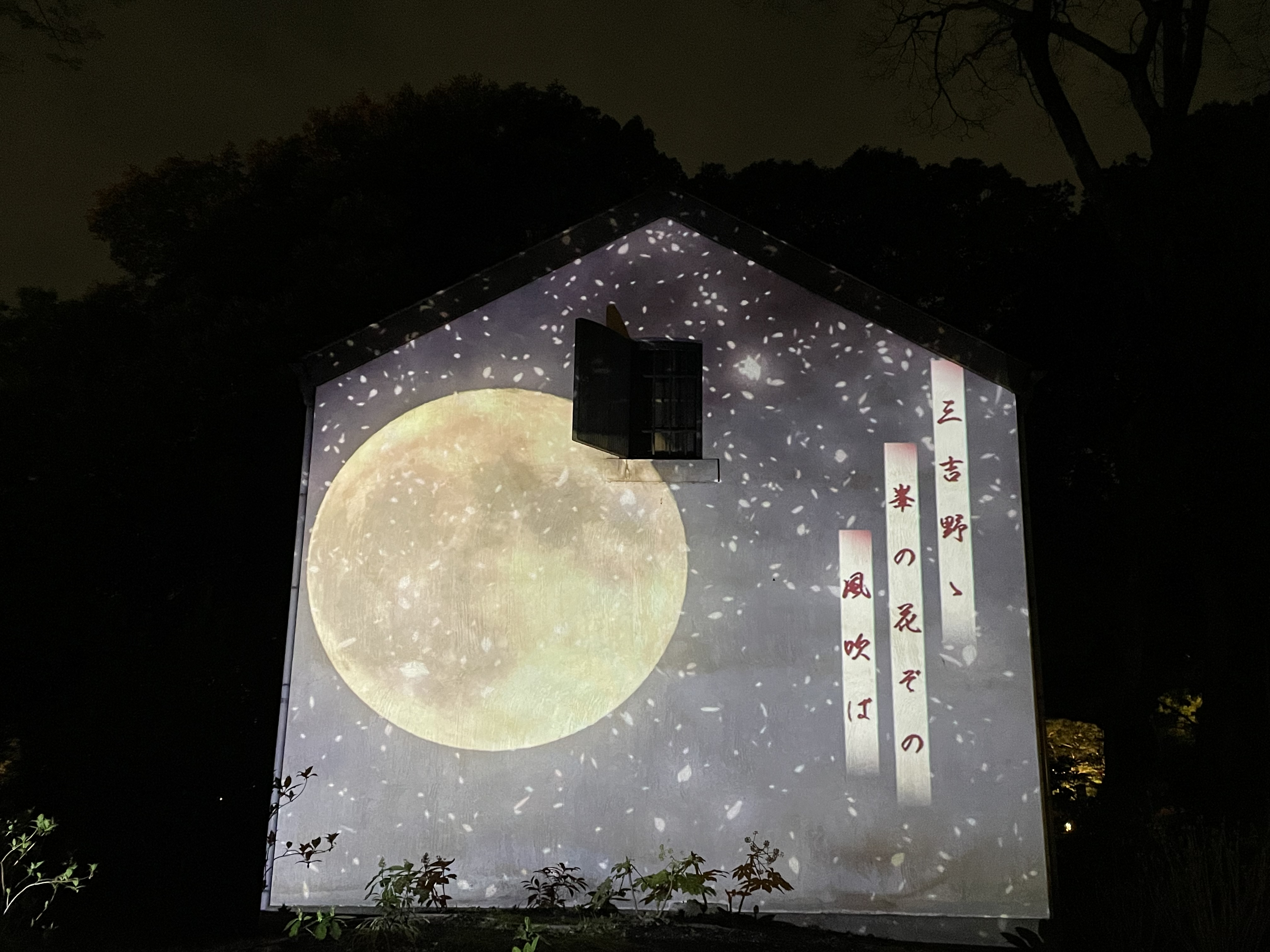 内容:三菱の創業者・岩崎家所有の時代に建てられた土蔵の壁面に、和歌と絵巻物をイメージしたプロジェクション映像が流れます。