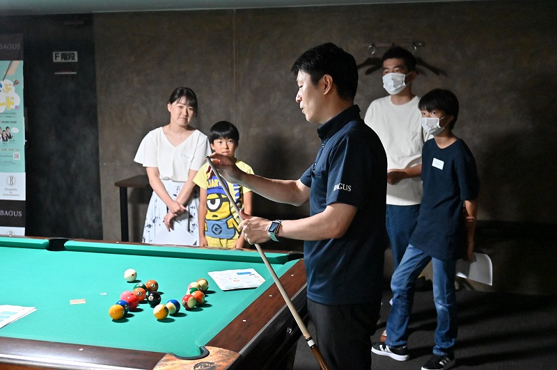 このように子供の頃からビリヤードに触れることで成功体験を積み重ね、自信に繋がり、さらに集中力、想像力、探求心を養うことが期待できます。またご家族一緒に楽しむことでコミュニケーションも深まります。今回のイベントでも様々なプログラムを用意し、ビリヤードが新たな家族レジャーとして広まるよう、取り組んでまいります。
