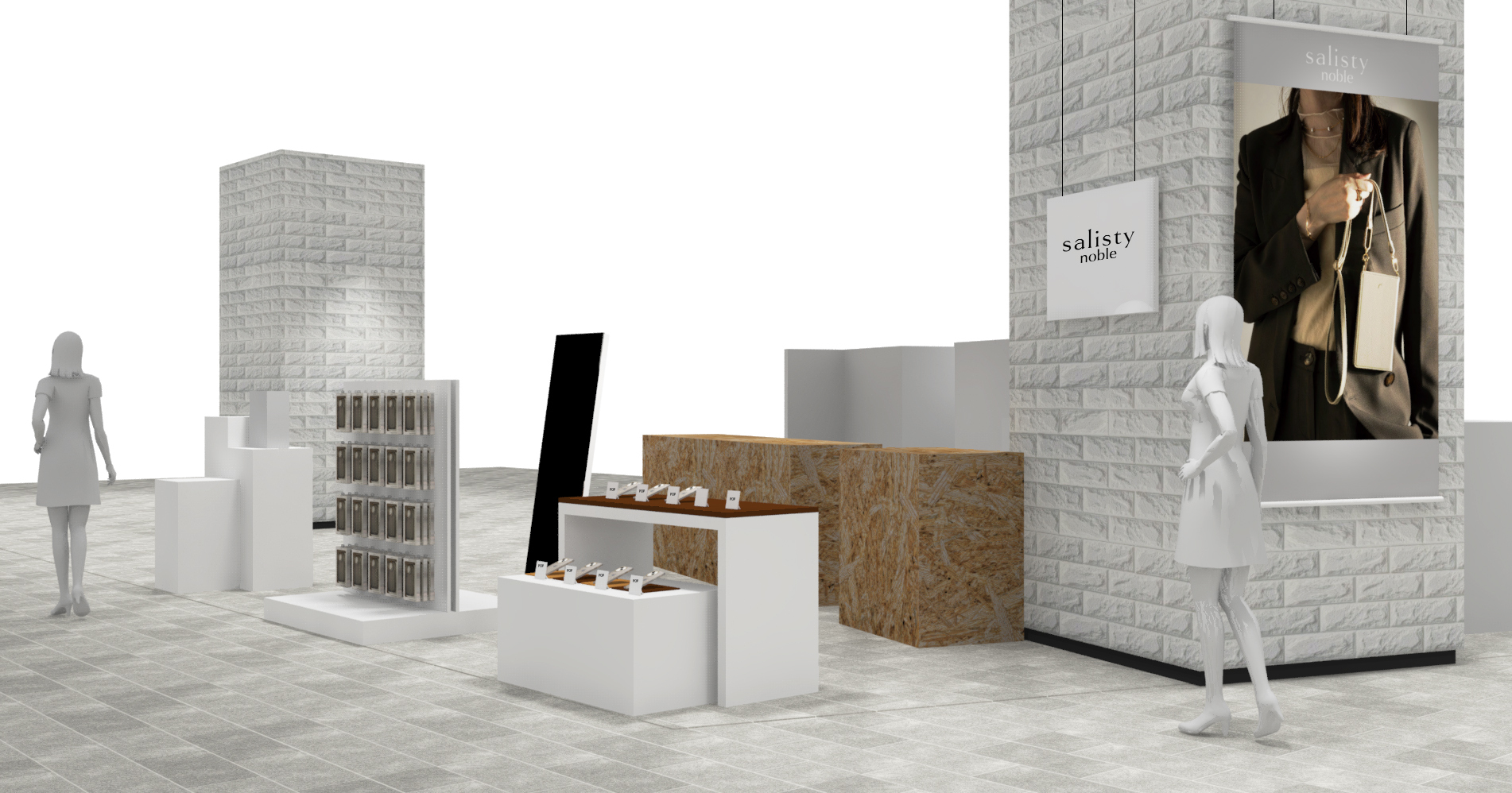 直接、製品を手に取って試して頂くなど「salisty noble」の上品で洗練された世界観を体感できるポップアップストアとなっています。