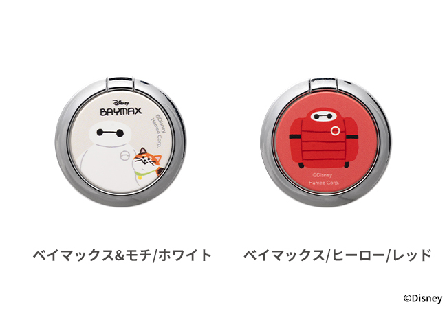 まるまるふさふさとした三毛猫「モチ」が「ベイマックス」に寄り添っている「ベイマックス&モチ/ホワイト」と真っ赤なパワードスーツからはみ出たマシュマロボディにくすりと癒される「ベイマックス/ヒーロー/レッド」2種類のデザインを展開します。