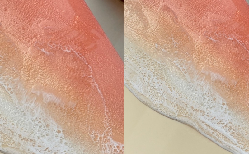 レジン(エポキシ樹脂)を使い、海を描くアートを販売しています。レジンで層を重ねることで深みと奥行きを出し、特殊な技法を使い波を描いて水面を表現しています。レジンを使用することによって、ガラスのような透明感と光沢を出すことができます。レジンアートはレジンの流動性を活かした作品で、全く同じ作品を作ることは不可能です。世界に一つのオリジナル作品となります。