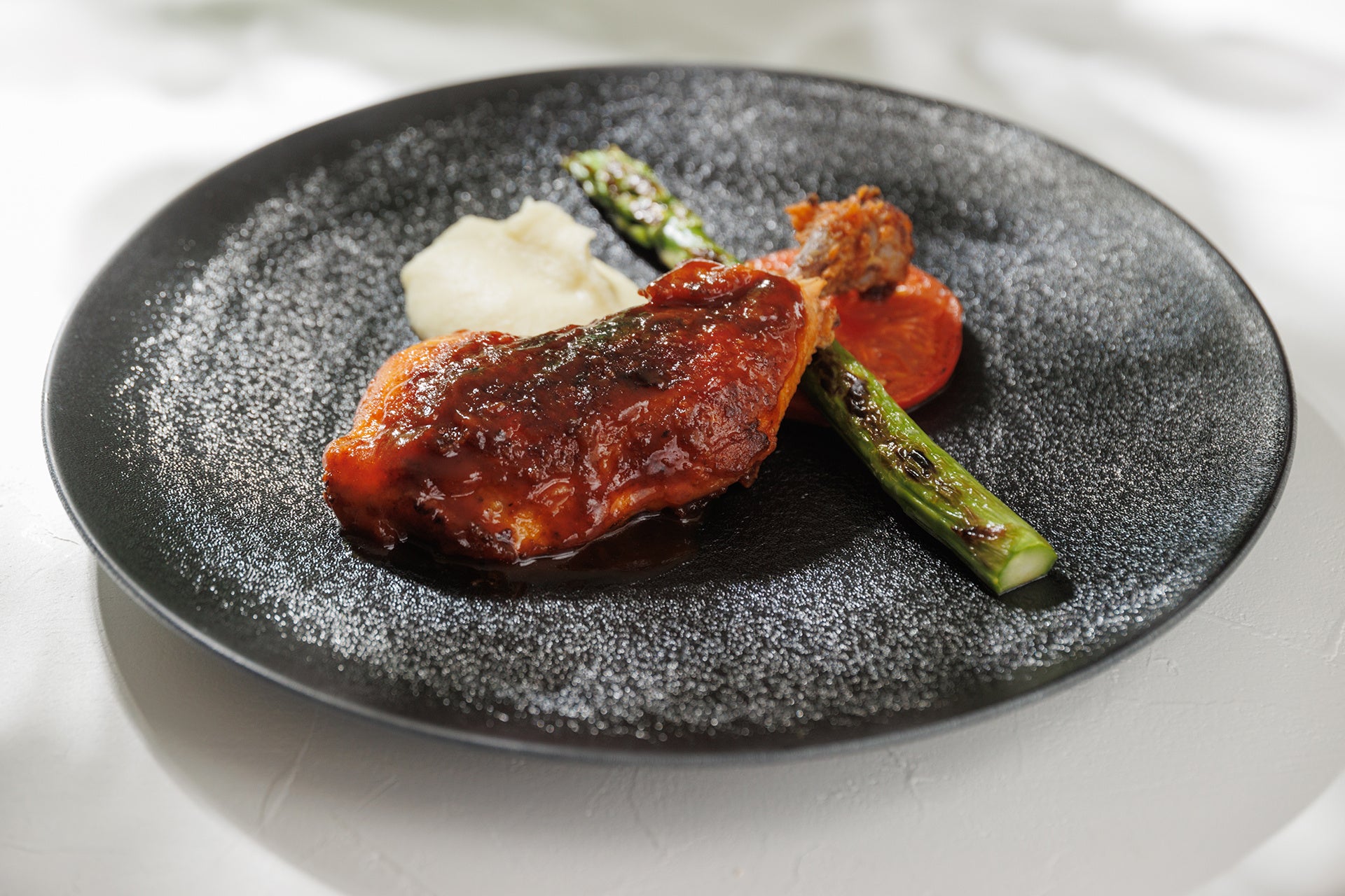 骨付きの仔牛肉を、ペッパー・クミンなどのオリジナルミックススパイスで焼き上げました。