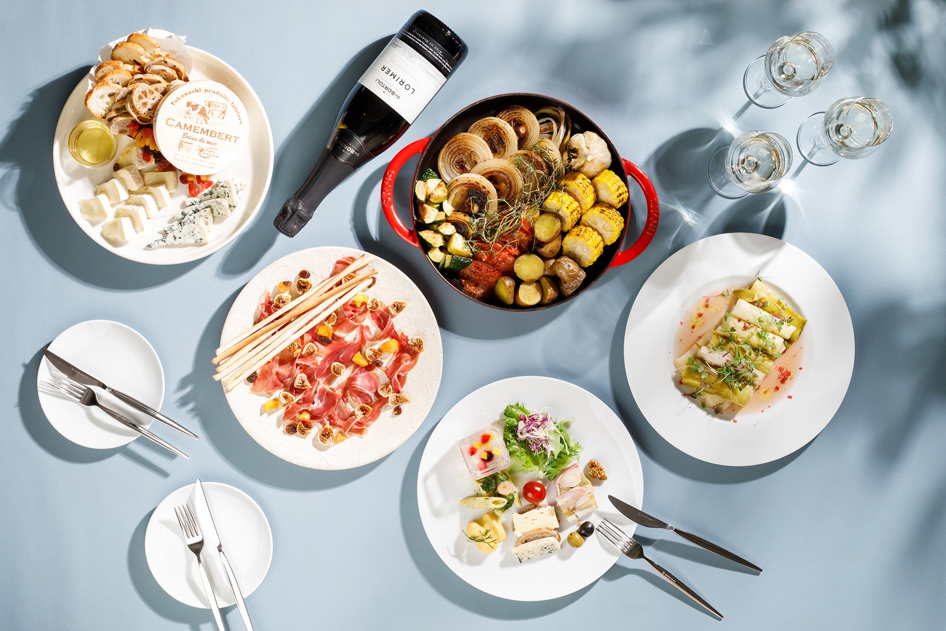 メインディッシュには、スパイシーな味付けの肉料理や、ワインに合う魚料理をご用意しました。ディナータイムのブッフェでは、シャルキュトリにランクの高いイベリコ豚を使ったハモン・イベリコ・ベジョータもご提供します。口溶けのよい脂身と長期熟成ならではの深い香りも堪能できる生ハムです。