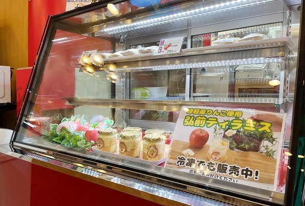 今回開発した商品は、青森県で栽培されたりんごの規格外品をプレザーブ(砂糖漬け)にしたものを使用した「りんごのティラミス」です。弘前市内の「道の駅ひろさき サンフェスタいしかわ」で9月5日(木)から販売を開始しました。