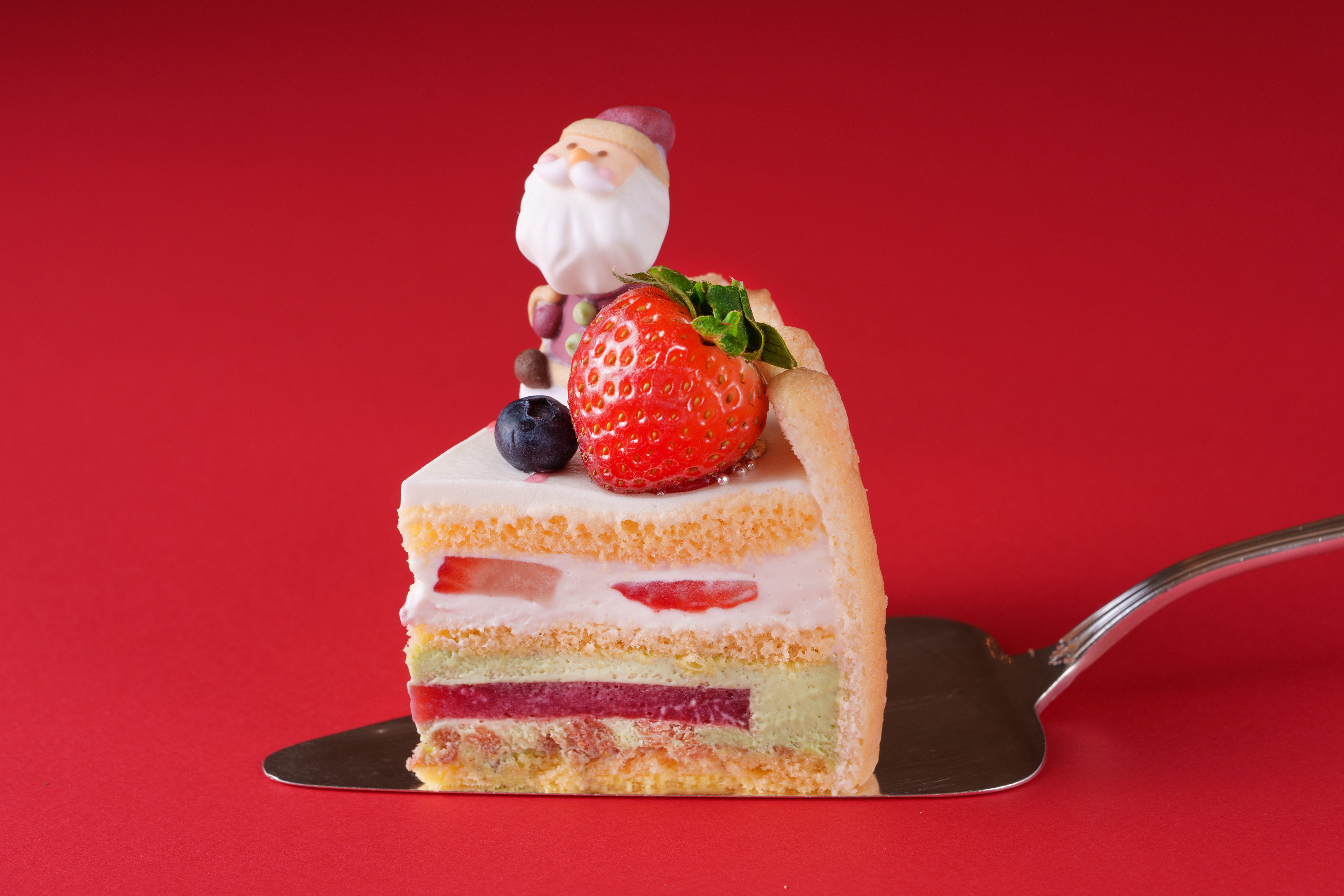 苺と相性が良い、香ばしくまろやかな味わいのピスタチオクリームにベリーのゼリーをサンドしました。甘酸っぱいフルーティーな苺とほどよい甘さでコクのあるクリームのハーモニーをたのしめるクリスマスケーキです。クリスマスカラーで彩られた可愛らしいケーキがホームパーティーを華やかに締めくくります。