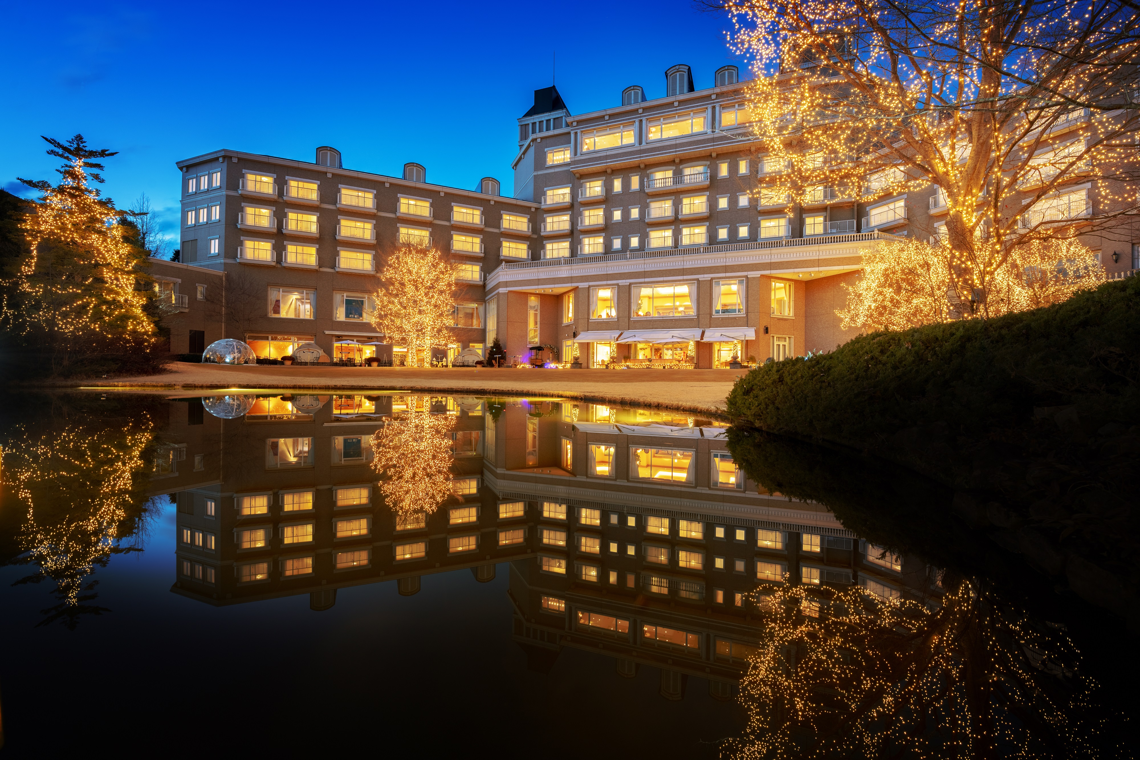 ライトアップされたガーデンを眺めながら、シェフが腕によりをかけたクリスマスだけの特別コースを堪能できる2食付き宿泊プランです。赤、緑、金で彩られたオードブルから始まり、魚介のうまみを閉じ込めたカルタファタの包み焼き、やわらかな仙台牛のグリルなど、華やかなディナーをご用意しております。