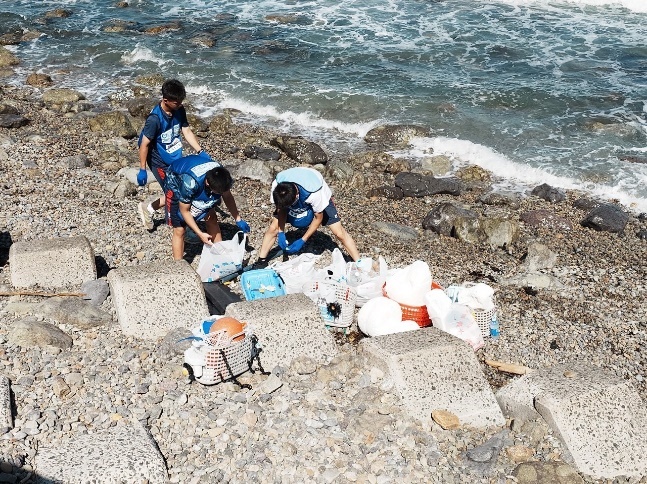 それを見た高校生たちは、残暑が厳しい中、一生懸命ごみを拾い集めました。外海に面しているため、大きなプラスチック製のごみや、ペットボトルなども多く、各チームの参加者は、両手いっぱいに大きな袋をいくつも持ち、改めて海洋ごみの多さに気が付いたのではないでしょうか。